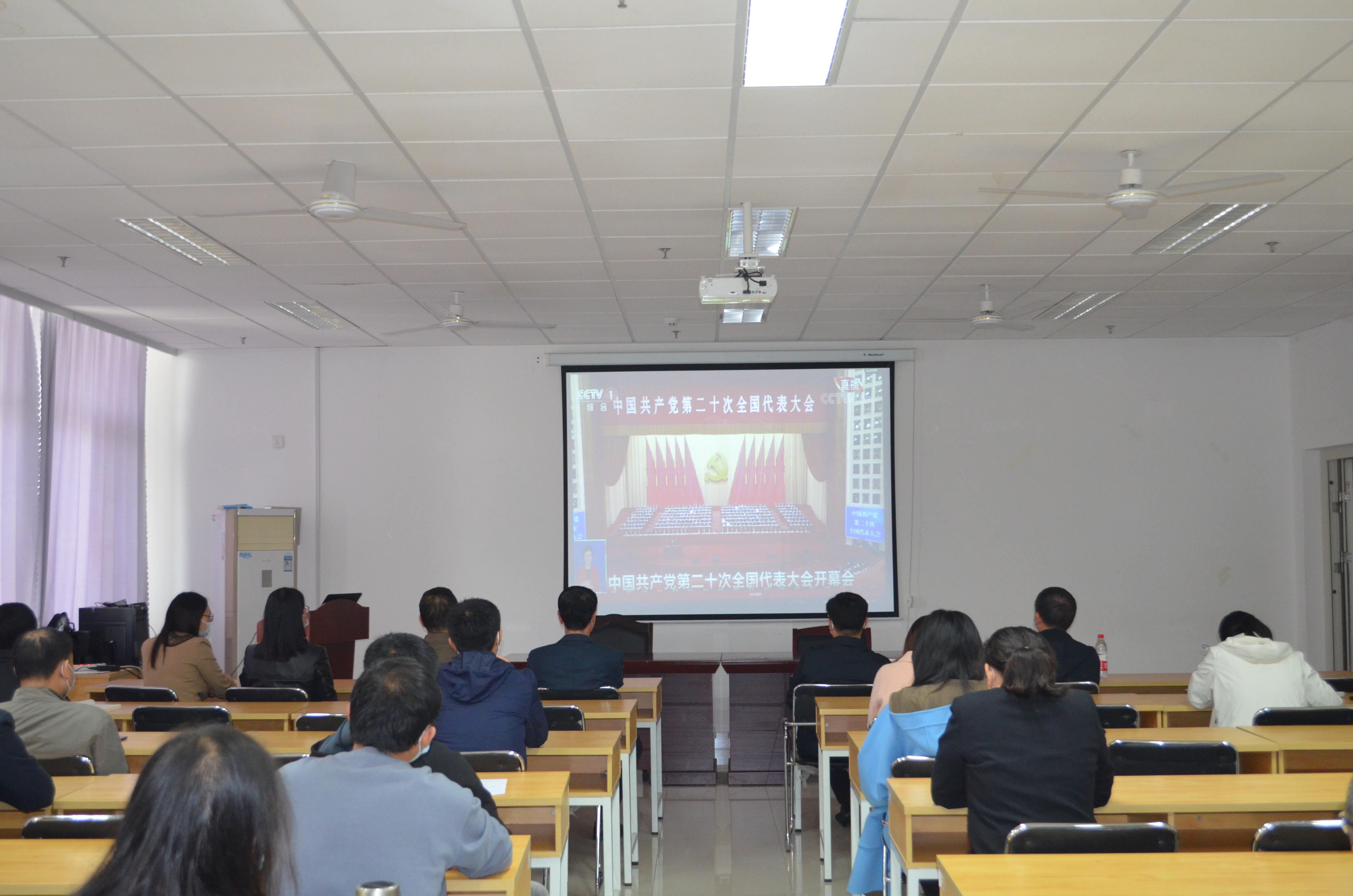 2022年10月16日上午,学院党委根据学校《关于认真组织收听收看党的二十大盛况》的通知要求,组织全体党员、团员等集中观看党的二十大开幕会直播。会议开始前,党委书记孙翔玲对观看开幕会的重大意义进行了强调,要求广大党员、团员师生认真观看开幕会,仔细聆听习近平总书记所作的二十大工作报告,会后要按照学校党委要求,积极主动做好党的二十大精神学习贯彻落实工作。