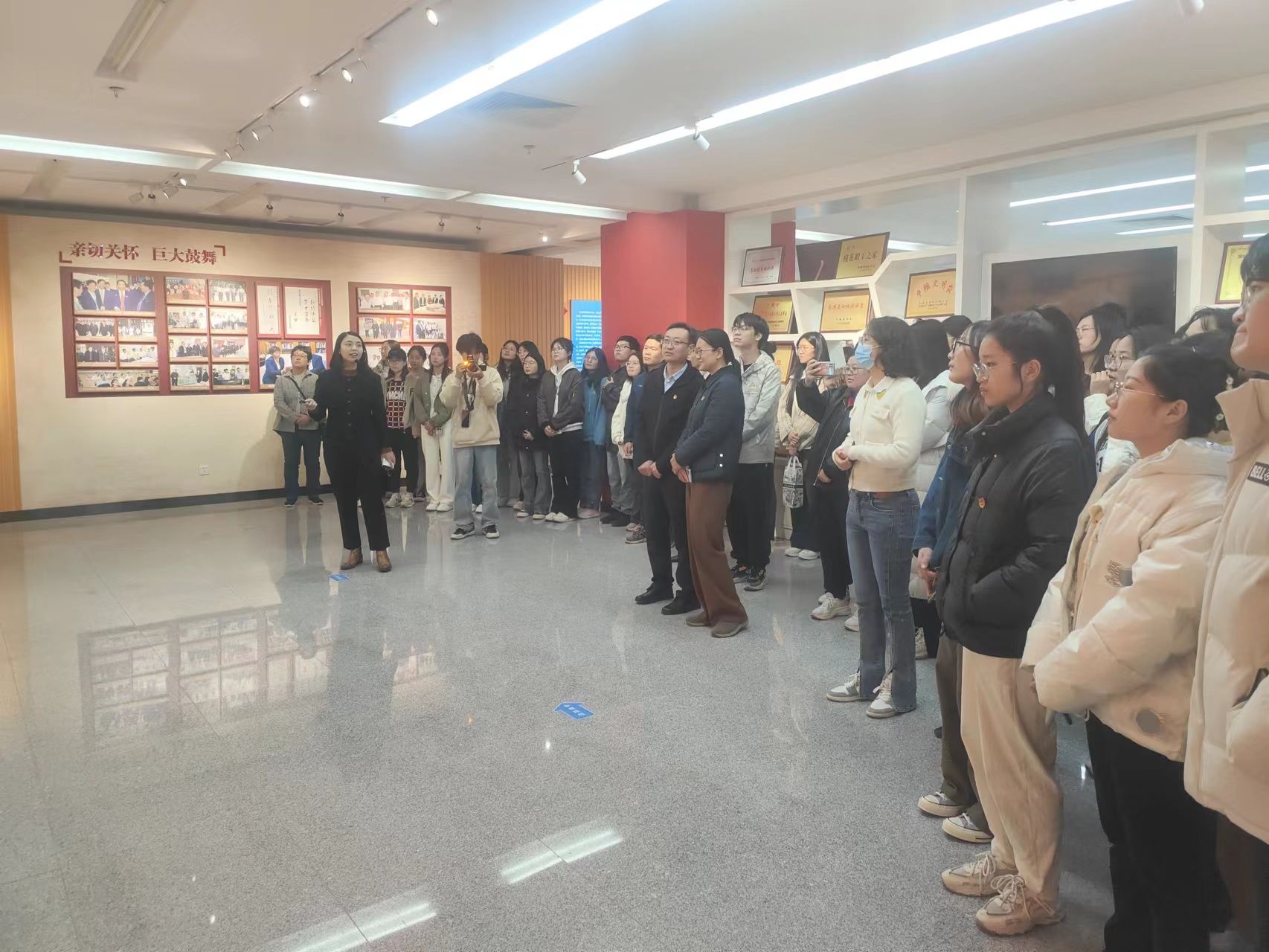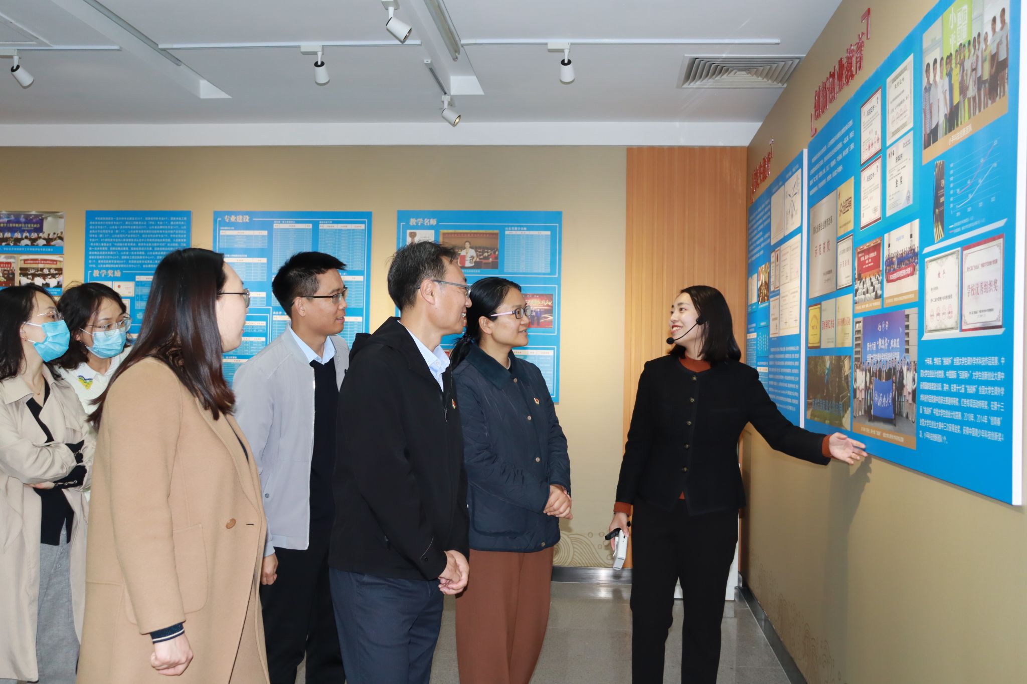 济南大学办学75周年成就展,从济大精神、历史沿革、人才培养、学科建设、师资队伍、科学研究、合作发展、国际交流、党建思政、校友风采以及筑梦未来等方面对济南大学建校以来所取得的卓越成就进行了展示。建校75年来,一代代济大人秉承“弘毅、博学、求真、至善”的校训,艰苦奋斗、凝心聚力、追求卓越,学校现已发展成为山东省人民政府与教育部共建的综合性大学、山东省重点建设大学、山东省高水平大学建设“冲一流”高校。回顾学校75年来取得的成就,全体党员感到由衷的自豪,更加坚定了作为济大人的使命担当。