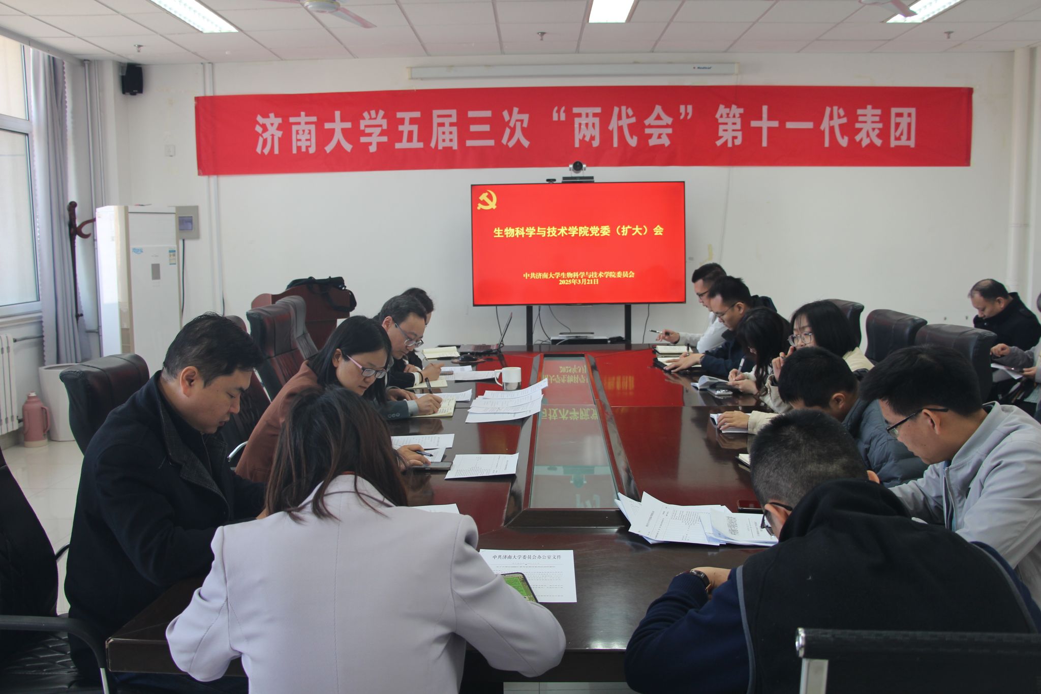 史国普传达了学校党的建设工作领导小组会议精神、学校纪委全委(扩大)会议精神及《中共济南大学委员会关于开展深入贯彻中央八项规定精神学习教育的通知》要求,研究部署学院深入贯彻中央八项规定精神学习教育工作。