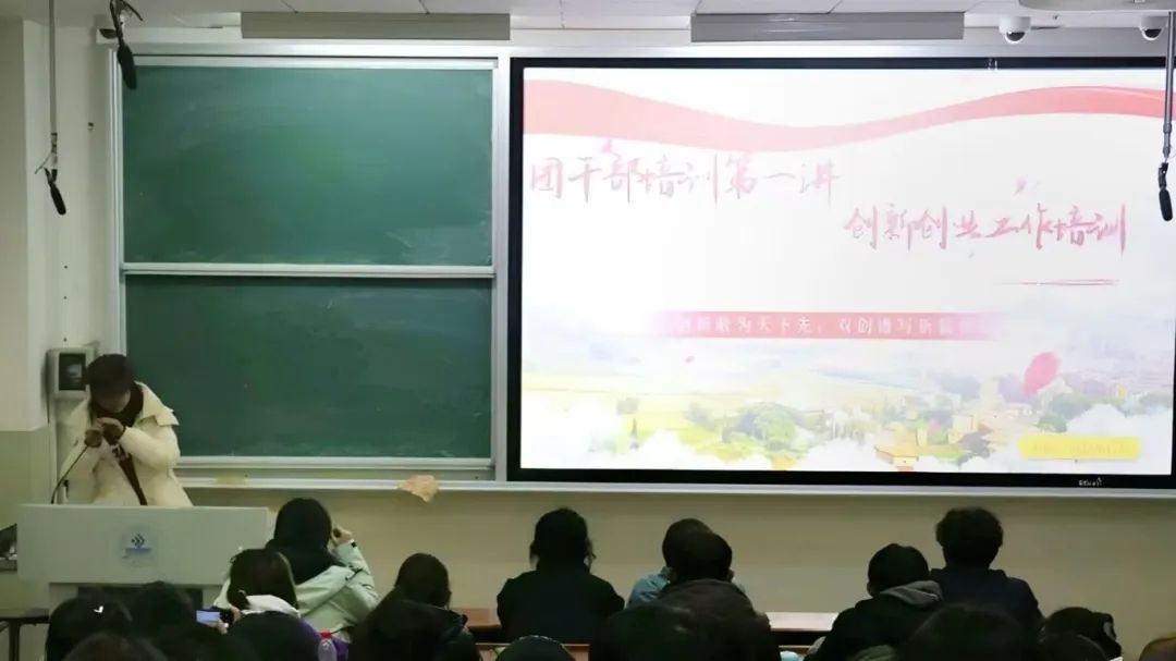 在2025年度新任职学生团干部培训会第一期中,开展了以“创新敢为天下先,双创谱写新篇章”为主题的科创专项培训。