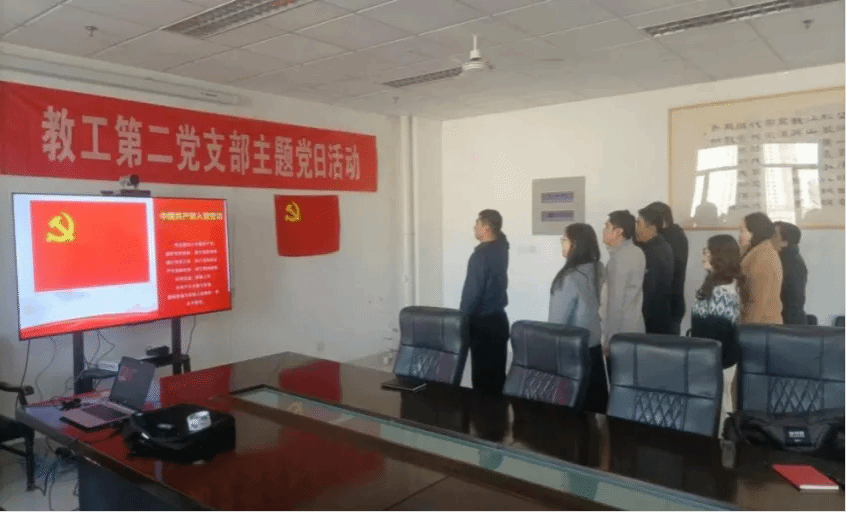 教工第二党支部举办“预备党员入党宣誓”主题党日活动。在鲜红的党旗前,支部书记樊祥宇带领新发展的预备党员王文波和支部其他党员,面向党旗,紧握右拳,庄严宣誓。这一神圣时刻,充分体现了新老党员对党组织的忠诚和对共产主义事业的坚定信念。宣誓仪式不仅是对新党员的政治洗礼,也为在场的教工党员注入了一股崭新的力量。