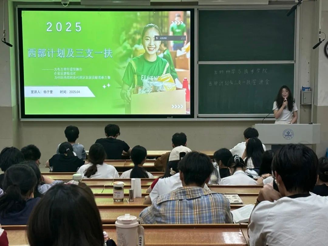宣讲会上,宣讲人详细讲解了西部计划及三支一扶的招募条件、工作内容、服务期限、补贴待遇以及优惠政策等。结合实践案例,深入剖析政策要点,让同学们对相关政策有了初步了解。