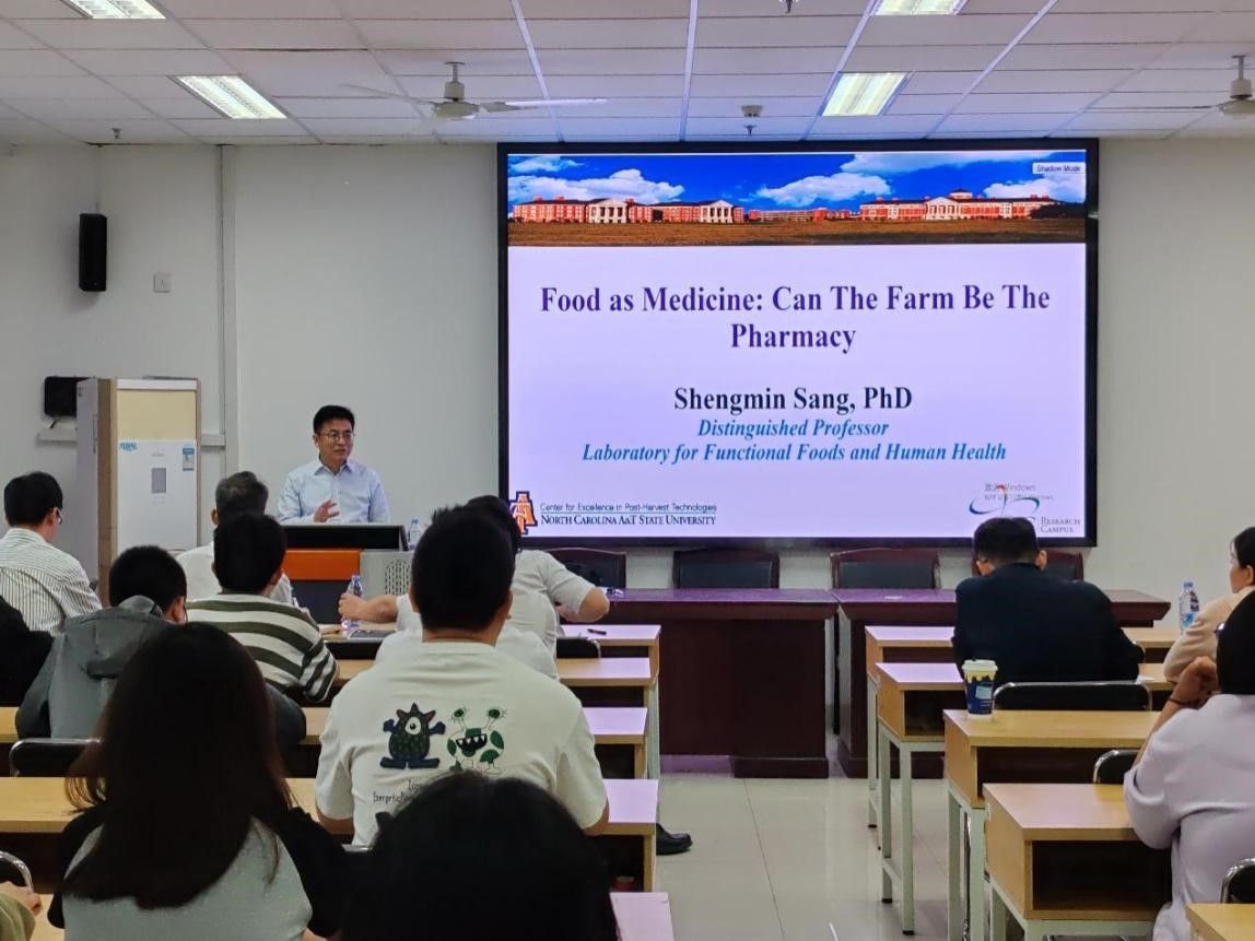 交流,并作了题为“Food as Medicine: Let the Farm be the Pharmacy”的学术报告。报告由学院副院长李强主持。