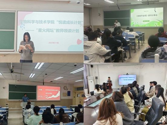 活动开展以来,共组织了4场“星火阅坛”教师领读计划”活动。活动打破传统“单向输出”模式,采用“领读讲解+互动研讨+实践联结”形式,教师领读人先梳理书籍核心思想,结合自身经历分享阅读感悟。其中,冯昕分享《为什么是中国》,让大家更深刻理解了“四个自信”的历史底气;阮斌分享《来路——中共党史中的伟大细节》里“一根灯芯”“半条被子”的故事,让大家更深刻体会到教育家的初心就是“把学生放在心里”的温暖;李立衡分享《袁隆平全传》中提到,袁隆平院士一生扎根稻田、心怀“禾下乘凉梦”的故事,不仅是科学精神的写照,更是教育工作者“言为士则、行为世范”的生动教材;卢洪斌老师结合施一公院士《自我突围》中“从河南小郭庄走向世界学术前沿”的成长轨迹,重点解读了书中"“独立思考”“突破舒适区”“与祖国同行”三大核心启示。通过讲述施一公在科研困境中坚持原始创新、放弃国外优渥条件回国建校的经历,引导学生干部思考“个人理想与时代责任”的关系。学生干部围绕“如何突破自我设限”“平衡学业与服务”等话题展开讨论,纷纷表示要从书中汲取“主动破局”的勇气,在服务同学中锤炼本领,在专业学习中夯实根基。