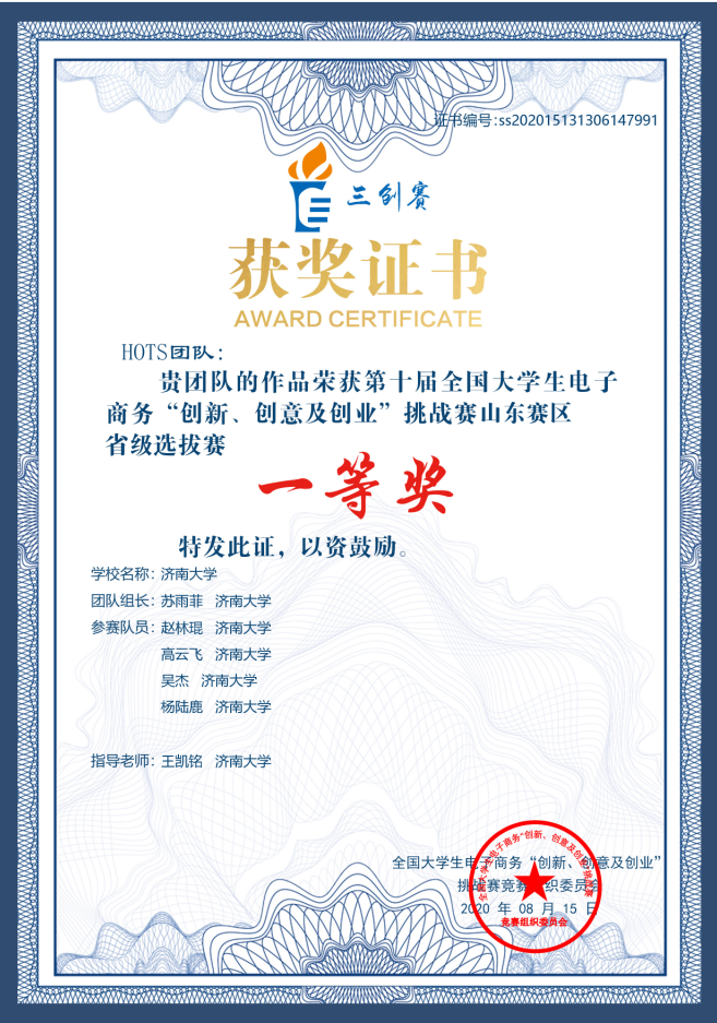 经过校赛的评选,全省共36所高校的1150件作品进入省赛初级赛,并有160支队伍从中脱颖而出进入中级赛。我院由王凯铭老师指导、苏雨菲同学为团队负责人的作品《智云药材—为打造优质云上中药材的航母级平台》荣获一等奖。“智云药材”是一个区域式的中药材产品营销服务商,解决了特色中药材产品存在的“优质中药材无品牌、销售渠道单一”、“质量不稳定、缺乏标准”等问题。项目以校、行、企+合作社的模式开展,打造出具有特色品牌的区域性产品,形成产业链发展趋势,为当地经济作物打开销路、提高效益,带动当地的经济发展,助力乡村振兴。