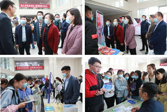在特教楼一楼大厅举办“青鸟计划·‘职’为你来”2021届毕业生专场招聘会。学校党委副书记张硕秋,党委学生工作部(处)、校团委、金沙国际