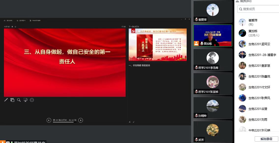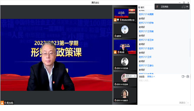 药学2101班、生物2201班学生讲授党的二十大精神专题《形式与政策》课。
