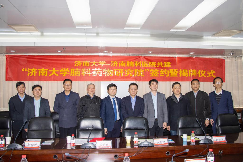3月29日上午,济南大学-济南脑科医院共建“脑科学(脑科药物)联合研究院”签约暨揭牌仪式在我校举行。济南大学副校长陈月辉,济南脑科医院院长成军群、全军神经外科副主委袁绍纪、济南脑科医院副院长杨绍涛,学校科技成果转化办公室副主任张志国,金沙国际