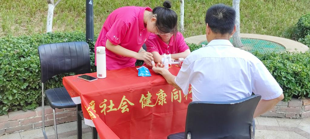 实践展风采,义诊显担当。7月8日至10日,学院“情暖社会,健康同行”义诊队来到济南市市中区中海御山华府进行为期三天的义诊活动。团队成员分工明确,协调配合,认真负责,为老人和居民量血压、测血糖,并运用所学知识提出合理有效的方法和建议。同时,团队在社区开展“健康讲堂”,普及保健常识,宣传科学养生方式,提高群众自我保健意识,用实际行动为人民群众的健康保驾护航。