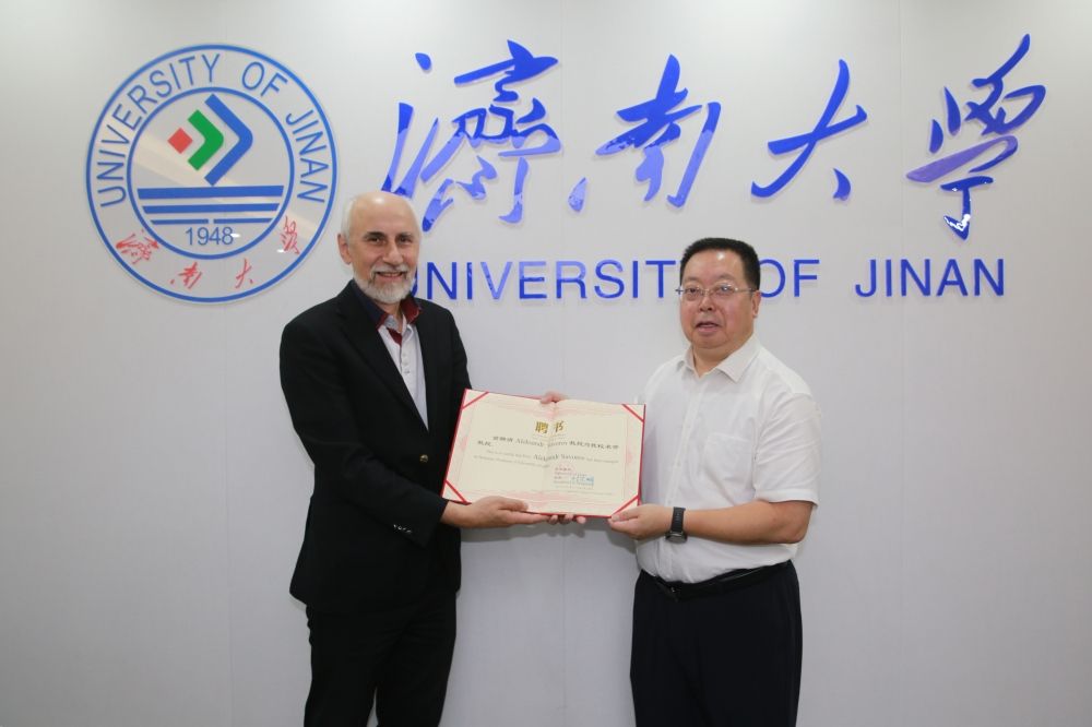 8月29日,俄罗斯科学院院士亚历山大•苏沃洛夫一行访问济南大学。校长刘宗明会见来访客人,并为亚历山大•苏沃洛夫院士颁发荣誉教授聘书。学校人力资源处、科技处、国际合作与交流处、金沙国际