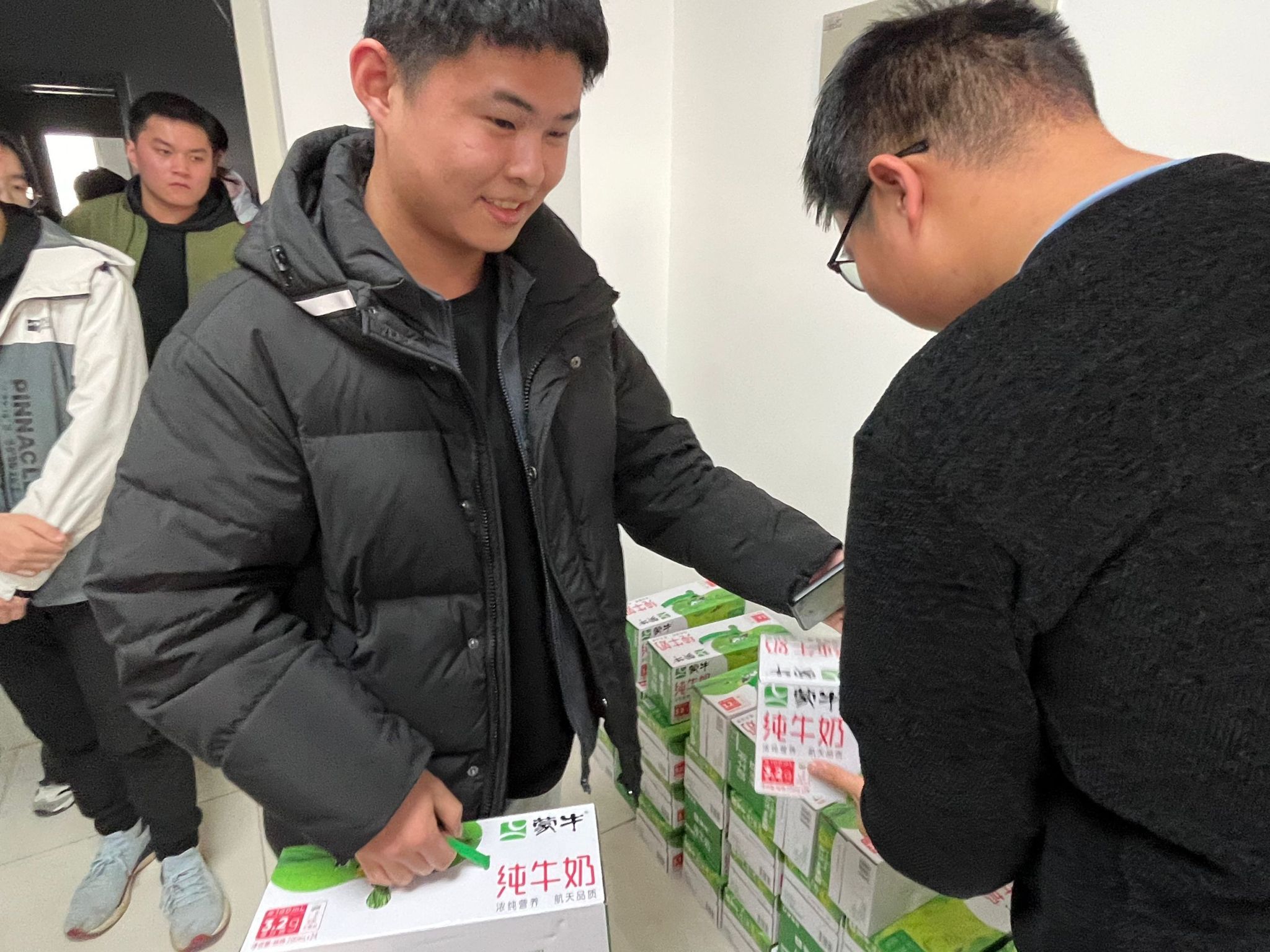 随后,与会领导和老师为考研学生发放了牛奶等慰问品,并就学生备考中遇到的问题做了沟通与指导。亲切的交流,温馨的祝福,承载了学院对考研学生最真挚的祝福和最美好的期许。同学们纷纷表示,感谢学院的暖心关怀,一定抓住最后的复习时间,全力以赴,努力拼搏,以最佳的状态迎接考试,争取佳绩,为学弟学妹树立榜样。