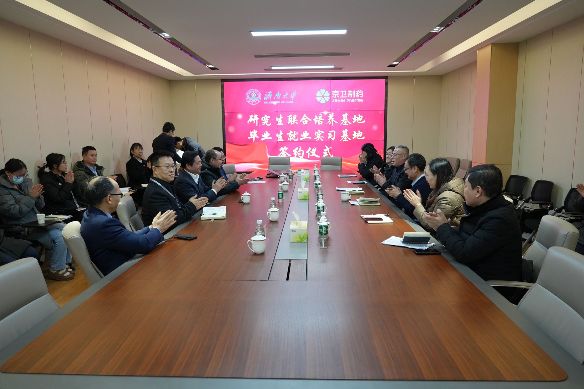李铁军向黄加栋一行的到来表示热烈欢迎,介绍了京卫制药公司的产业布局、发展成就,回顾了近年来与济南大学的合作情况,并对在公司工作的济南大学毕业生给予了高度评价,表示希望在前期合作的基础上,深耕细作、持续发力,把双方合作推向更高层次、更宽领域,共同为国家医药产业振兴作出贡献。