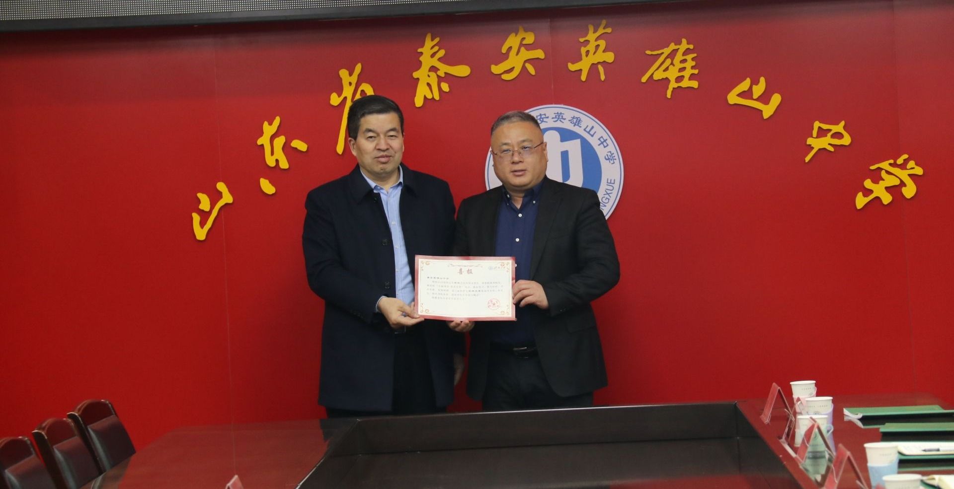 李金山对黄加栋一行的到访表示热烈欢迎,介绍了英雄山中学的历史沿革、办学理念以及近年来在学生培养、特色办学、教师发展等方面的成绩。