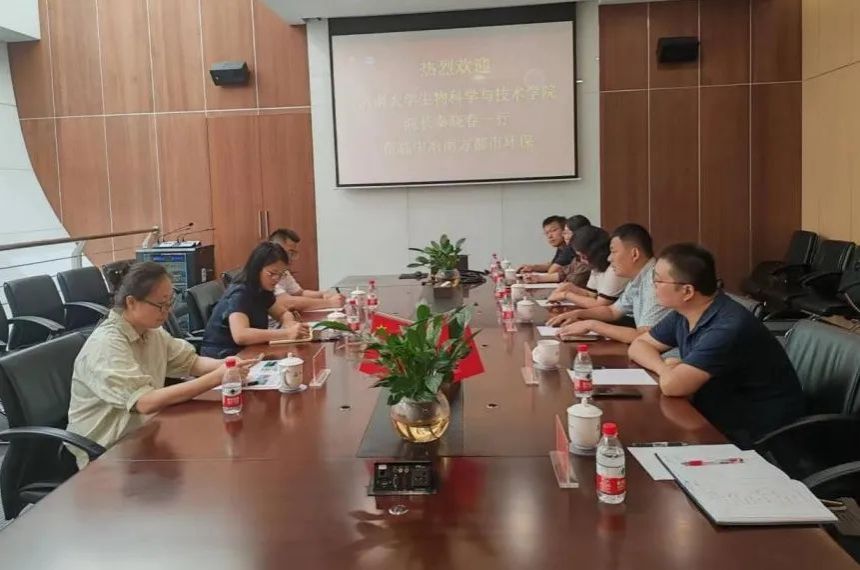 赴中冶南方都市环保工程技术股份有限公司开展交流活动。中冶南方都市环保工程技术股份有限公司环境修复分公司总经理归强、技术副总赵颖、营销部长孔繁亮,生科科学与技术学院院长秦晓春及部分教师代表参加活动。