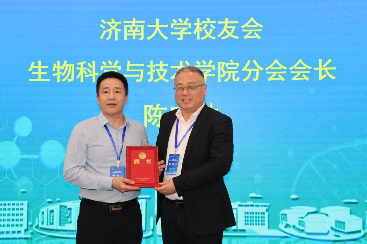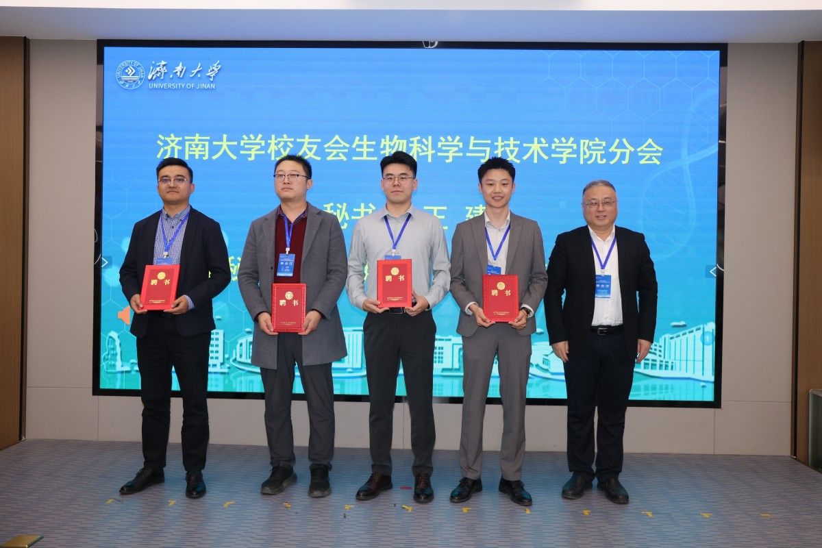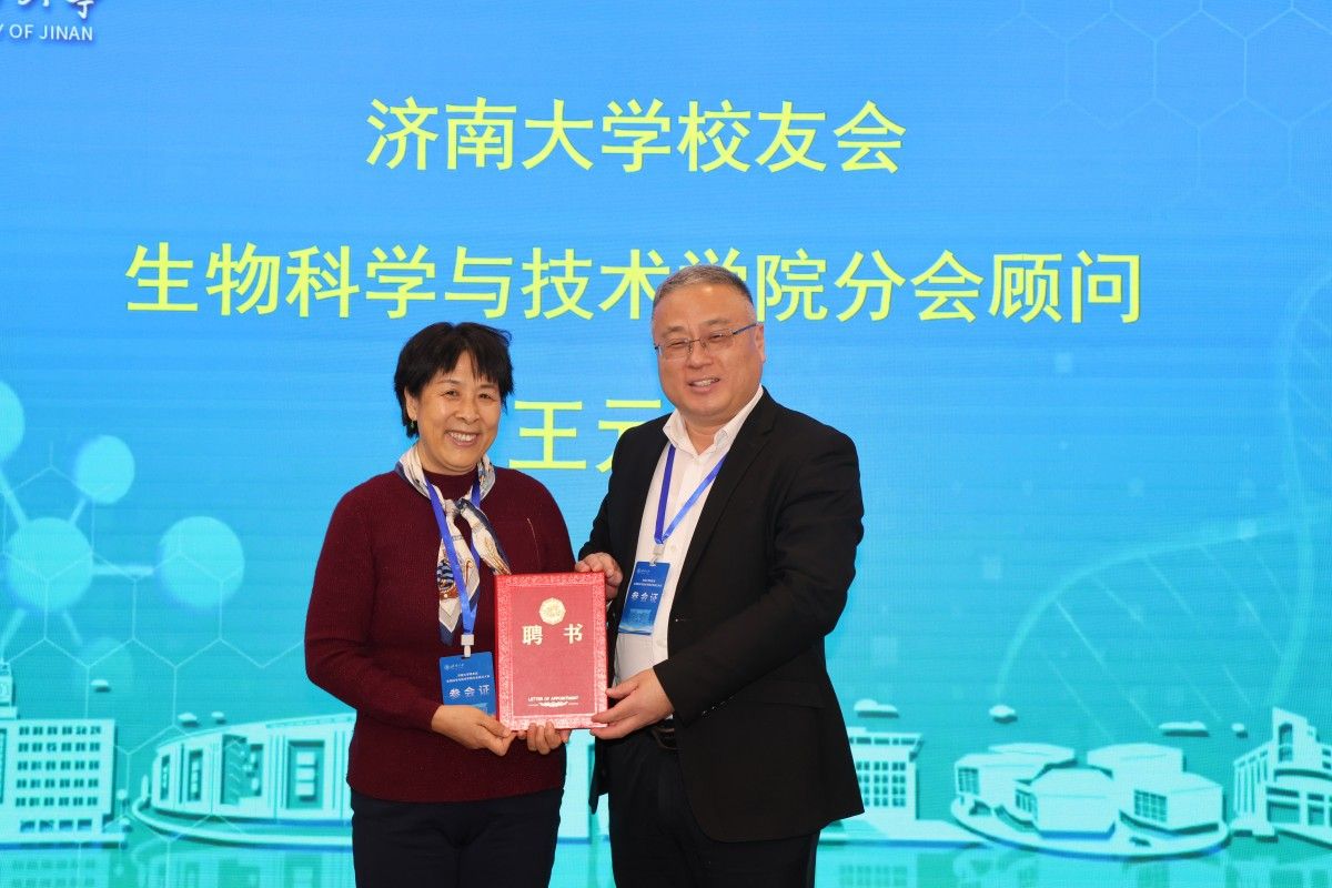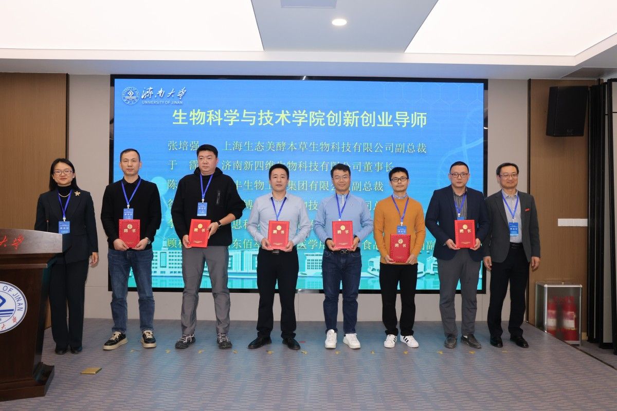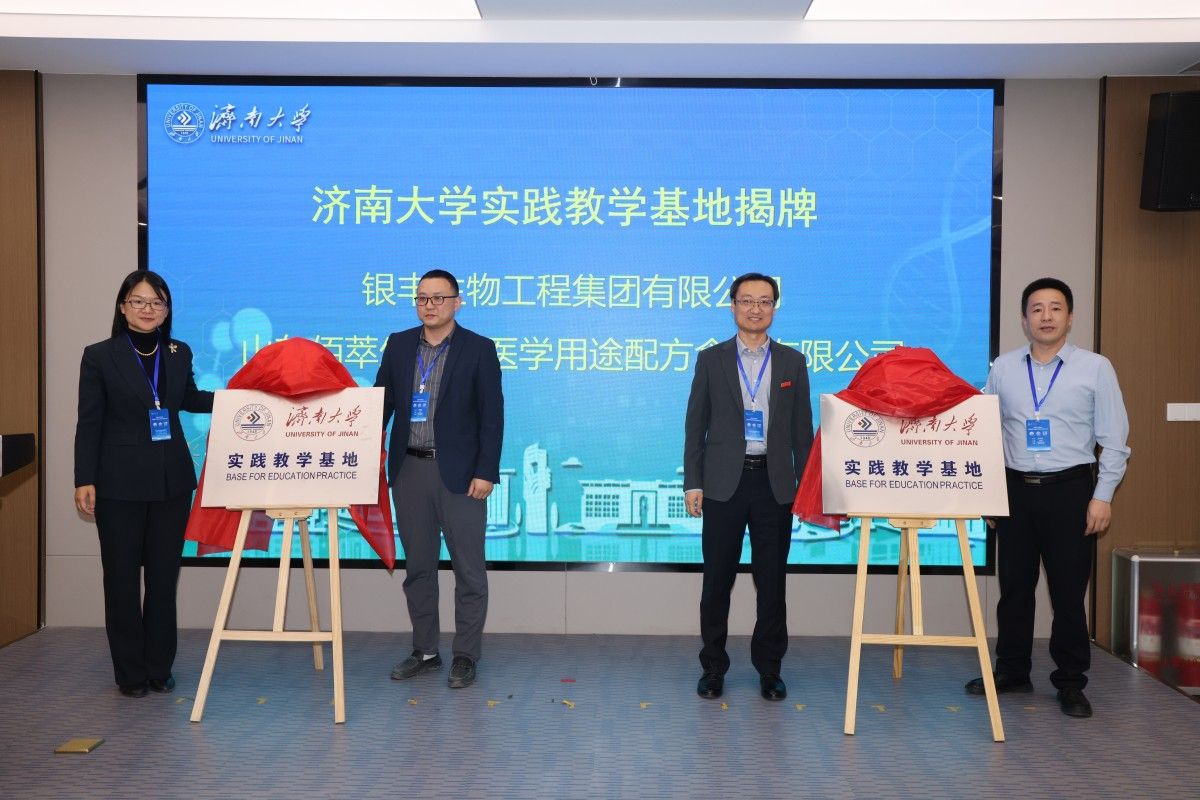 与银丰生物工程集团有限公司、山东佰萃生特殊医学用途配方食品有限公司举行济南大学实践教学基地揭牌仪式;与济南新四维生物科技有限公司举行校友企业捐赠仪式;为学院创新创业校友导师颁发聘书。