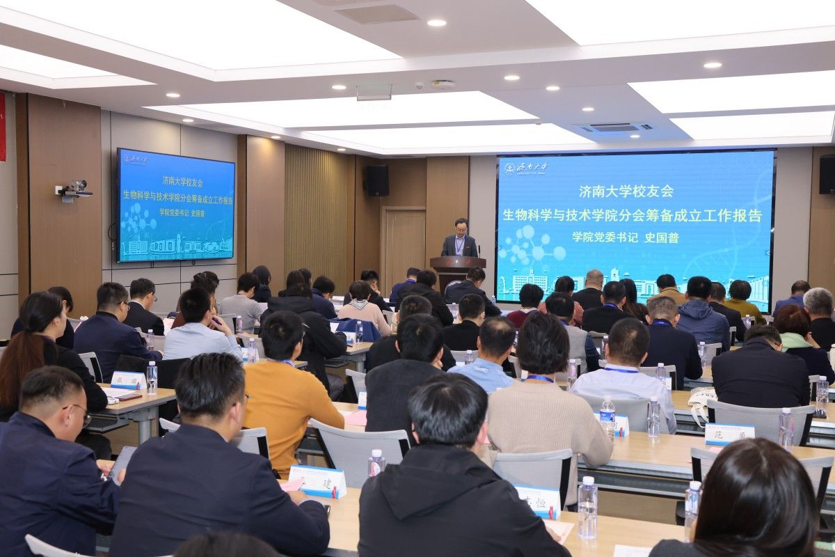 的发展情况。他指出,校友是母校最靓丽的名片和最宝贵的财富,学校、学院发展成绩的取得,离不开广大校友的关心和支持。希望能够以济南大学校友会生物学院分会的成立为契机,将校友工作的发展进一步同学校高水平大学建设的事业紧密结合,共同绘就携手同心、共谋进步的宏伟蓝图。母校永远是校友温馨的港湾,欢迎校友们继续关注和支持学校的发展,常回家看看。